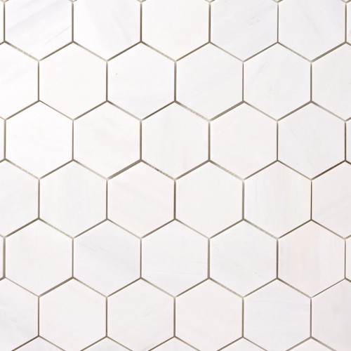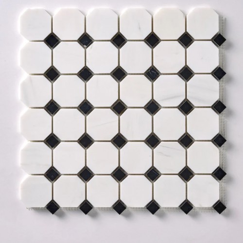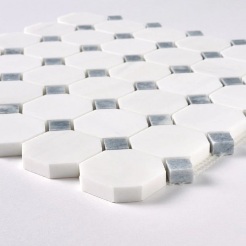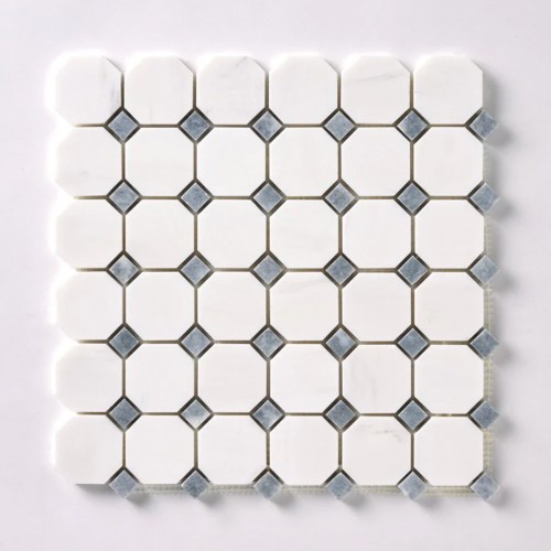 Bianco Dolomite Polished Octagon w/ Blue – Gray Dots Mosaic Tile