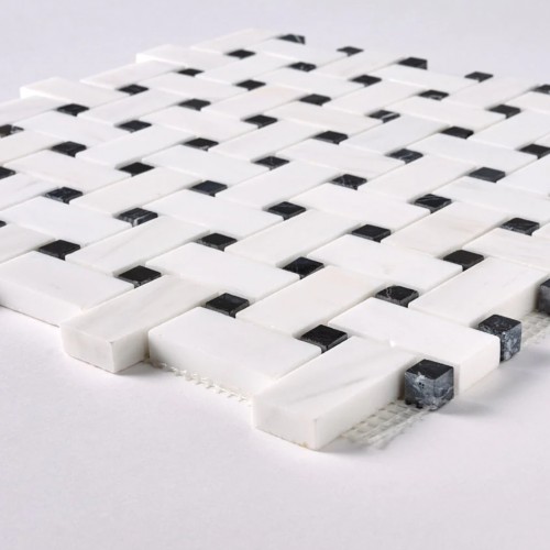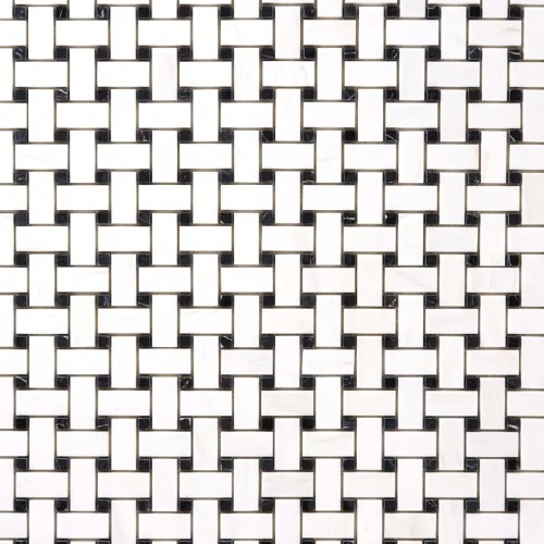 Bianco Dolomite Polished Mosaic Basketweave w/ Black Dots Mosaic Tile