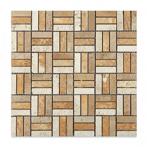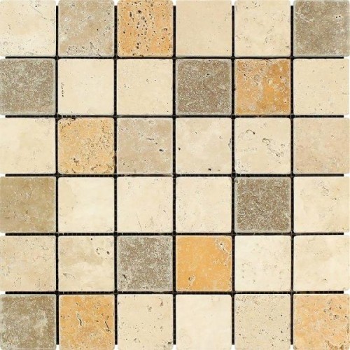 Noble White Cream Polished Square w/Emp. Dark Mosaic Tile 2×2″