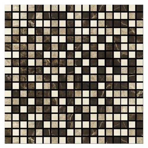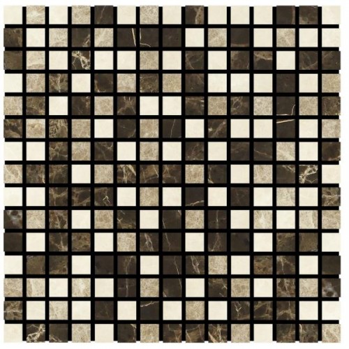 Noble White Cream Polished Square w/Emp. Dark Mosaic Tile 5/8×5/8″