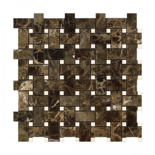 Emperador Dark Polished Basketweave Mosaic w/ Crema Marfil Mosaic Tile