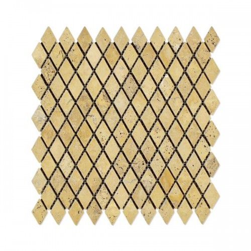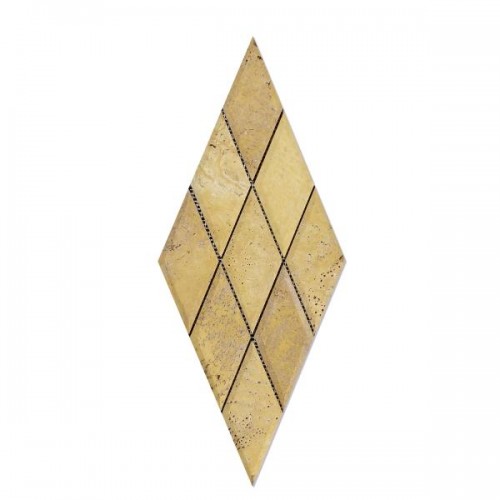 Gold Travertine Tumbled Deep Beveled Diamond Mosaic Wall Tile 3×6″