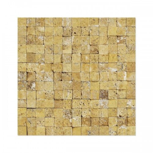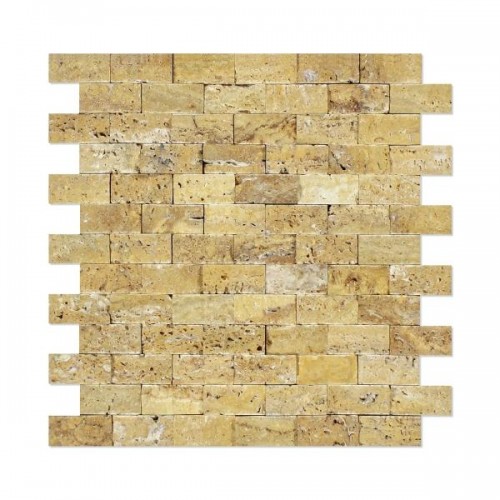 Gold Travertine Split Faced Brick Mosaic Wall Tile 1×2″ Split-faced
