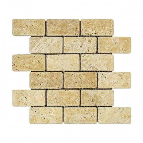Gold Travertine Tumbled Brick Mosaic Wall and Floor Tile 2×4″