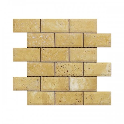 Gold Travertine Honed Deep Beveled Brick Mosaic Wall Tile 2×4″