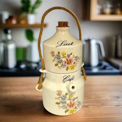French Vintage Ceramic Coffee & Milk Pot Set – Café au Lait, Farmhouse Kitchenalia