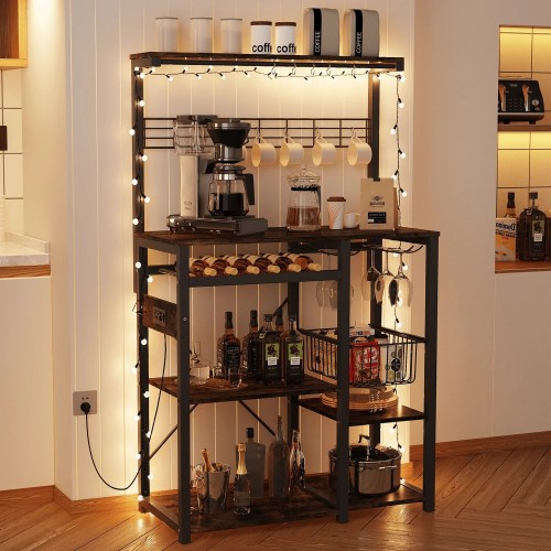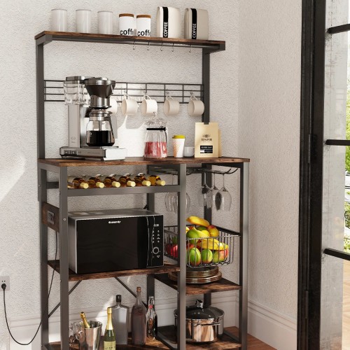 60″Coffee Bar Appliance Station for Kitchen, Vintage Brown Rustic Brown Kitchen Stand 2