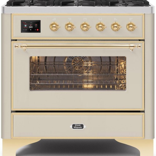ILVE Majestic II 36″ Dual Fuel, Liquid Propane, Freestanding Range, White, Brass Trim UM096DNS3WHGLP