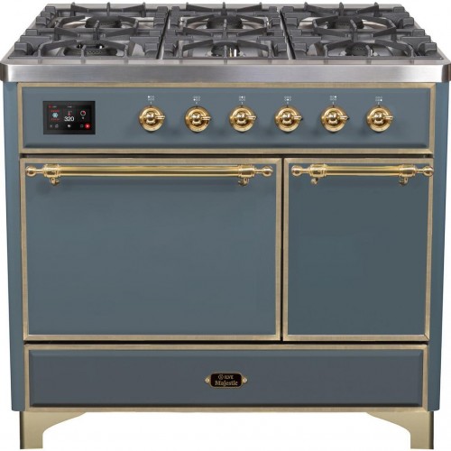 ILVE Majestic II 40″ Dual Fuel, Natural Gas, Freestanding Range, Blue Grey, Brass Trim UMD10FDNS3BGG