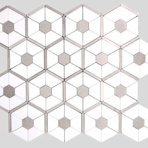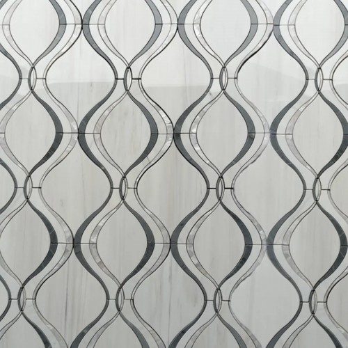 Dolomite w/ Bardiglio & Mother of Pearl Polished Waterjet Mosaic Tile
