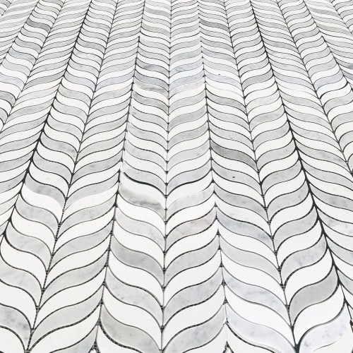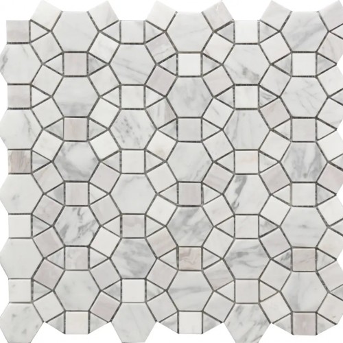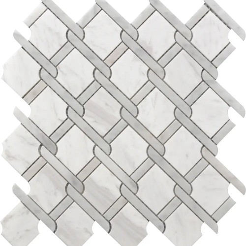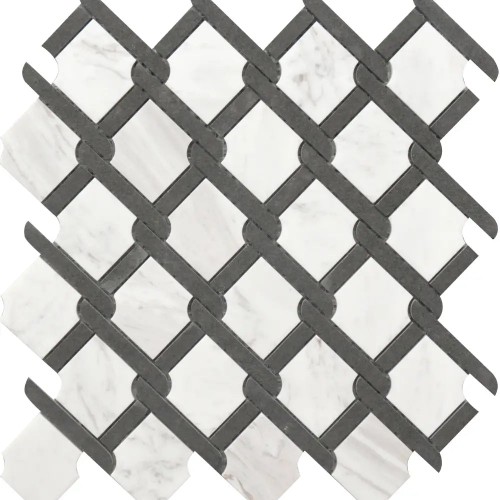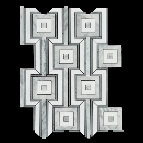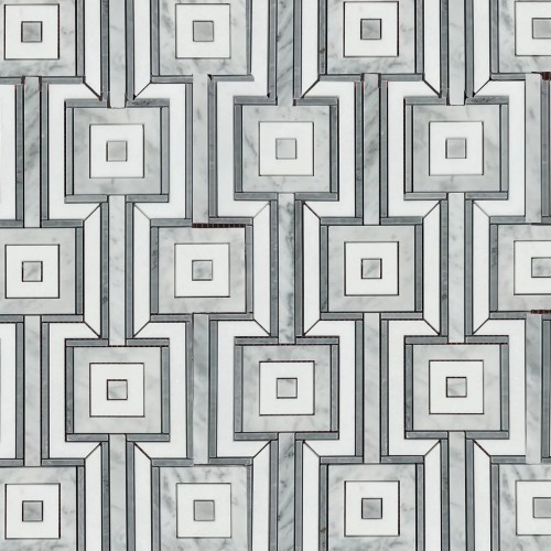 Maze Bardiglio w/Thassos White Marble & Carrara White Polished Waterjet Mosaic Tile
