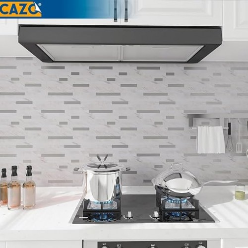 WOWSTAR 10-Sheet Peel and Stick Tiles, Marble Look Kitchen Backsplash Tiles, 12″x12″ (Gray Marble)