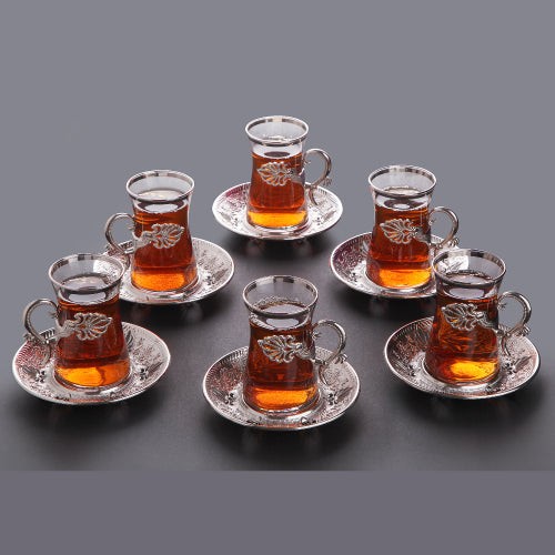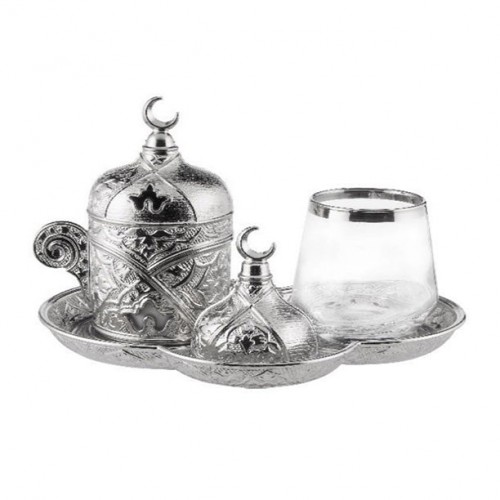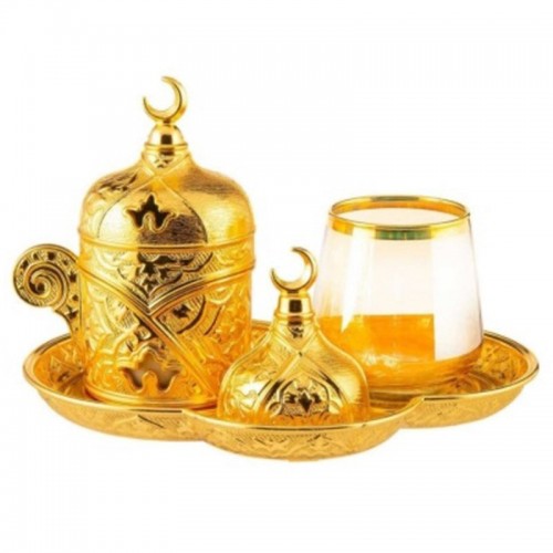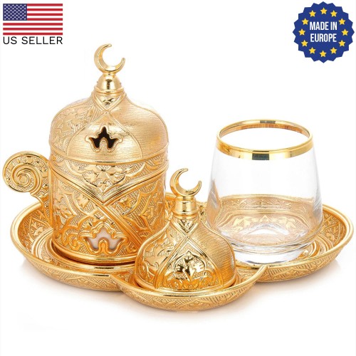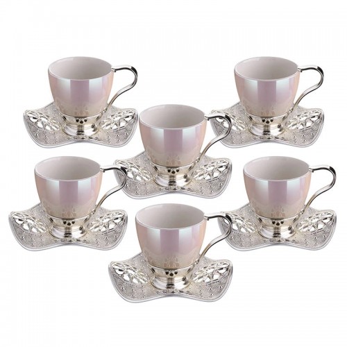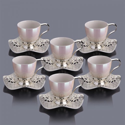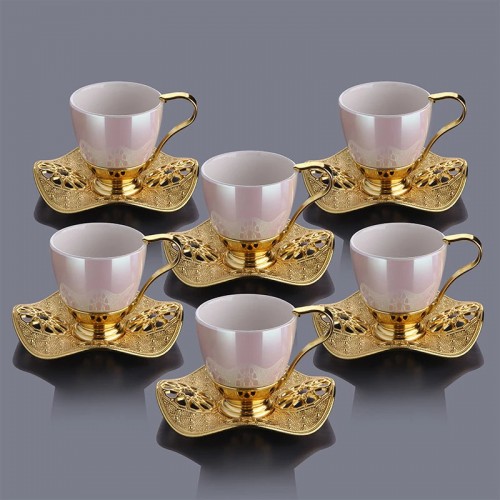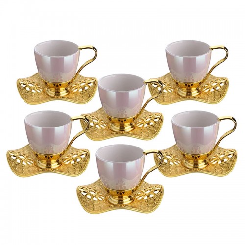Pearl Turkish Coffee Cup Set of 6, 18-Piece Handmade Coffee Cups, White and Gold, 3 Oz