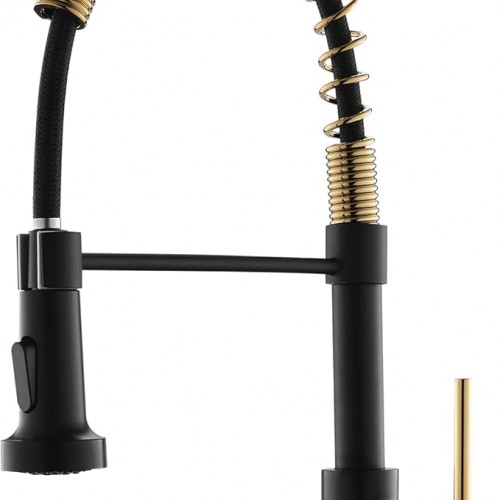 AIMADI Matte Black Kitchen Faucet,Black and Gold Kitchen Faucet with Pull Down Sprayer Commercial Single Handle Spring Sink Faucets Suitable for Farmhouses,Camper Laundry Rv Bar