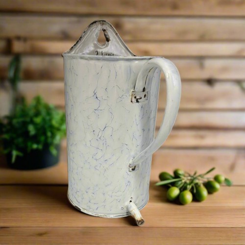 Vintage Enamel French Irrigator, Garden Planter, Kitchen Jug, Shower Caddy