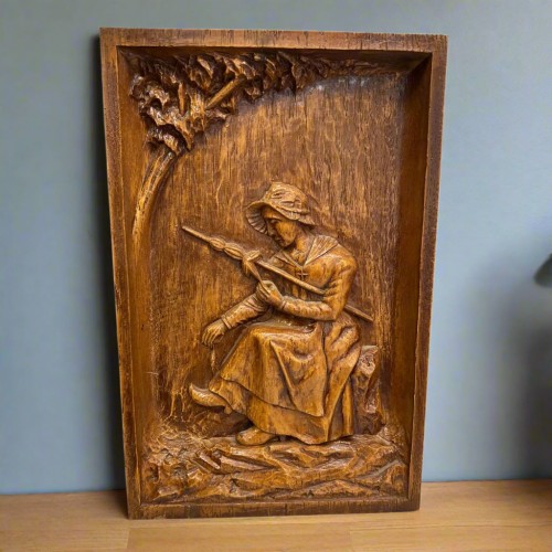 Vintage French Carved-Style Wall Plaque – 1970s Rural Scene – Arts & Crafts Style