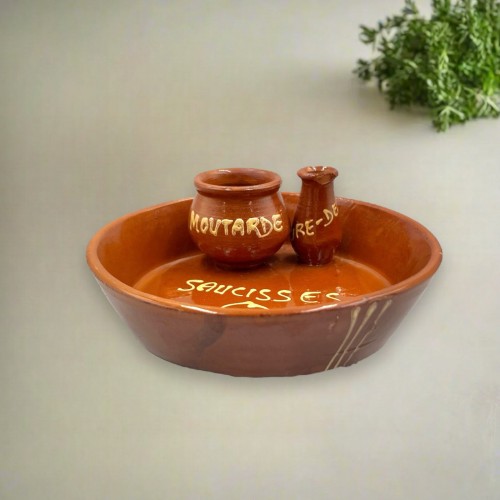 Vintage French Cast Iron Art Deco Fondue Pot – Octagonal Brown/Beige Pan