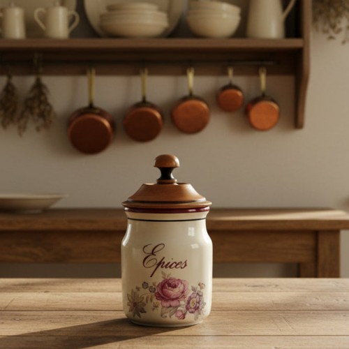 Small French Spice Pot, Shabby Chic Ceramic Farmhouse Style Spice Jar