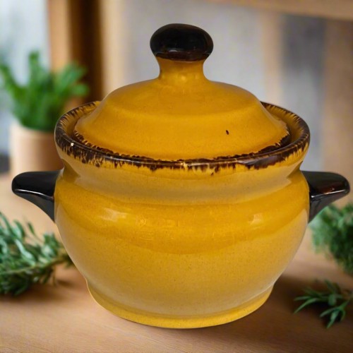 Vintage French Bertine Porcelain Bowl with Lid – Amber 1L Soup Tureen