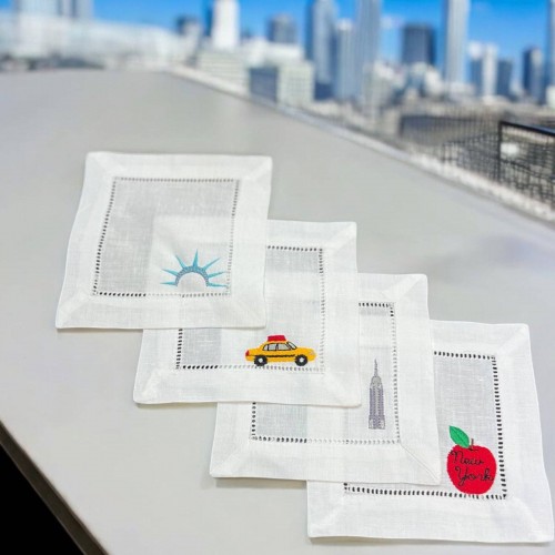 Embroidered Cocktail Napkins/Coasters New York Set of 4 Napkins