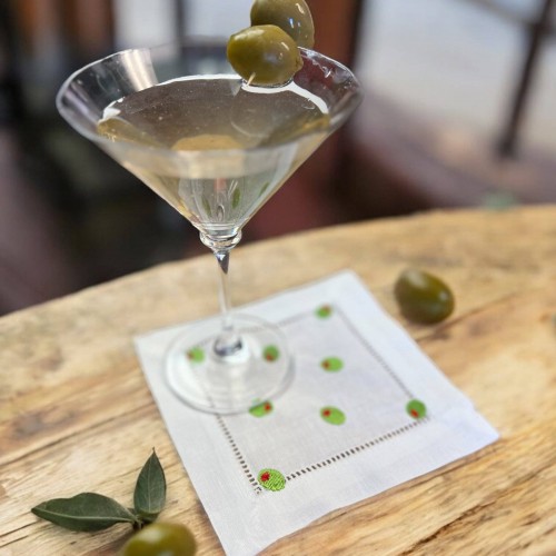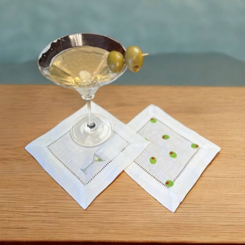 Embroidered Cocktail Napkins/Coasters Olives Set of 2 Napkins
