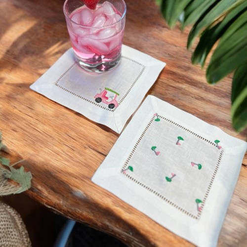 Embroidered Cocktail Napkins/Coasters Golf Lovers Set of 2 Napkins