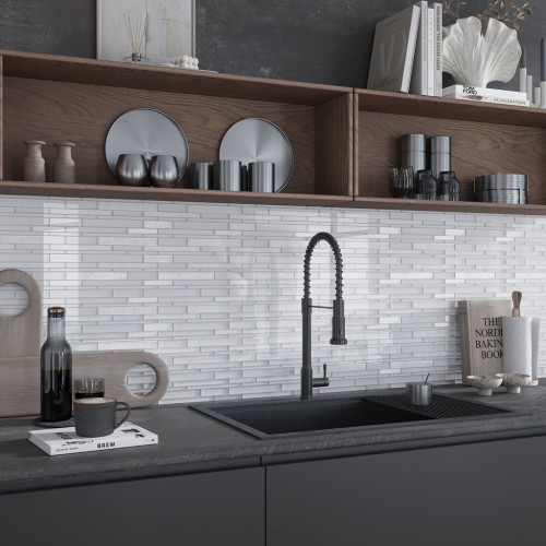 White 12×12 Glossy Matte Brick Glass Metal Mosaic Tile (5 pack, 4.83 sq ft/case) Full