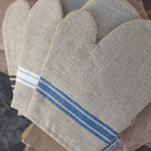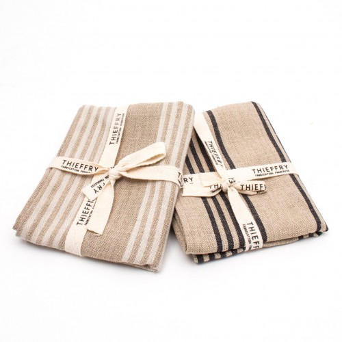 Thieffry Belgian Linen Dishtowels, White Stripe & Natural, Set of 2