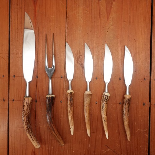 Anton Wingen Jr 6 Pc Carving & Steak Knife Set Stainless & Stag Solingen 1960s 70s