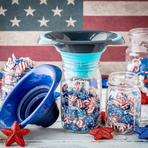 Kitchen Canning Funnel – Collapsible Silicone Food Funnel for Wide Mouth and Regular Mason Jars – Flexible Use for Coffee, Liquid, Jam, Cooking, Baking, Crafts – Blue