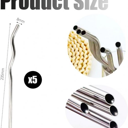 Reusable Stainless Steel Drinking Wavy Colorful Straws,With Curved Bend Metal Long Drinking Straws Set for Milkshake,Smoothie,Beverage,5 Piece. (Colorful)
