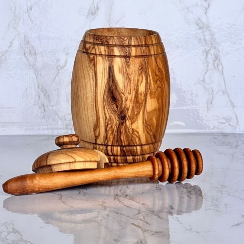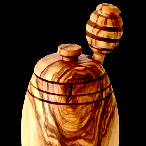 Honey Pot with Honey Dipper, Olive Wood