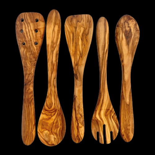 Kitchen Servers 5 Piece Set, Olive Wood