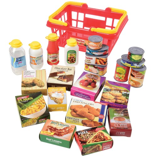 Shopping Basket with Play Food – 23-Piece Pretend Grocery Set