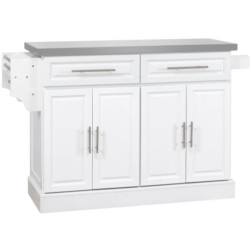 Rolling White Kitchen Island with Drop Leaf and Tilt-out Trash Can Storage, Spice Rack & Towel Rack