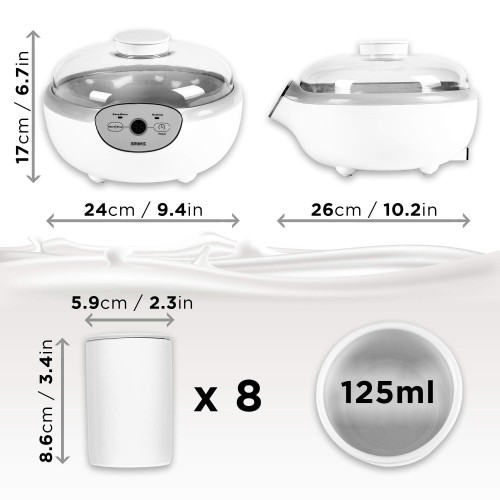 Duronic Yoghurt Makers YM2 Electric Yogurt Maker with Eight 125ml Ceramic Pots Digital Yogurt Making Machine for Homemade Natural Greek Yoghurt 20W Cheese Maker for Healthy Breakfast Protein Snack