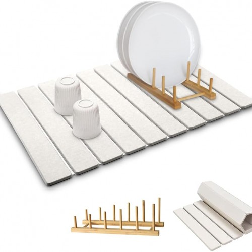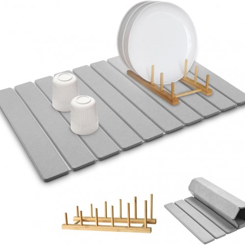 Stone Dish Drying Mats for Kitchen Counter,24×16 IN,Foldable Dish Drying Mat,Equipped Dish Rack,Strong Water Absorption,Diatomaceous Earth Material,Suitable for Plates,Cups and Any Kitchen Utensils