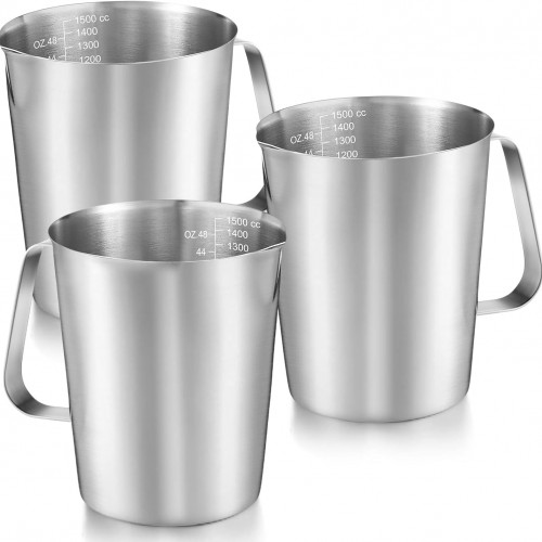 Flutesan 3 Pcs Stainless Steel Measuring Cups Measuring Pitcher with Handle with Markings for Latte Art, Water Pouring 6 Cup (50 oz)