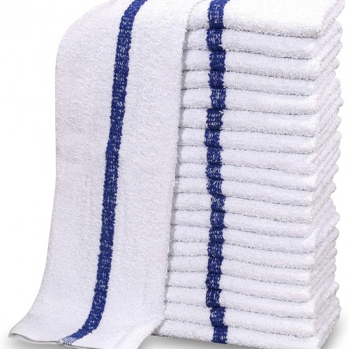 60 PC New Cotton Blend White Restaurant Bar Mops Kitchen Towels (5 Dozen) (60, Gold Stripe)