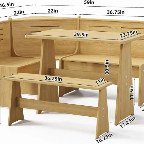 Farmhouse Breakfast Nook Table Set with Corner Bench United States