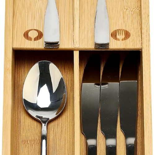Bamboo Silverware Drawer Organizer Cutlery Tray for Drawer Wood Kitchen Utensil Tray Flatware Caddy Cutlery Holder Utensil Drawers Organizer for Spoon Fork Knives Wooden Silverware Trays