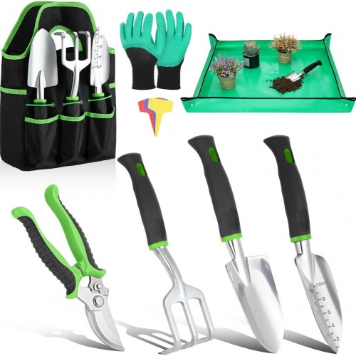 8-Piece Gardening Tool Set – Heavy Duty with Rubber Grip & Large Tool Bag