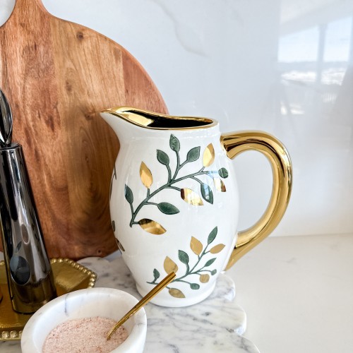 White and Gold Floral Print Pitcher