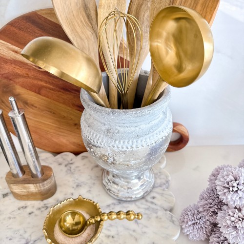 Silver Terracotta Pedestal Kitchen Utensil Holder
