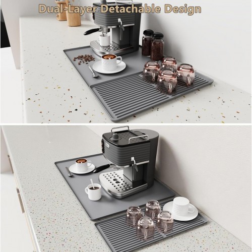 Coffee Bar Mat, Coffee Maker Mat, 24″x16″ Silicone Coffee Mat, Spill-Proof, Heat-Resistant, Non-Slip, Fits Under Coffee Maker & Dish Rack (Gray, 24″x16″)