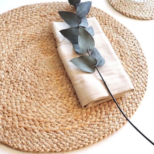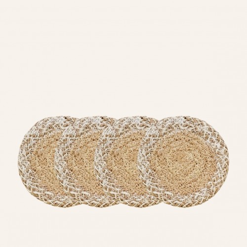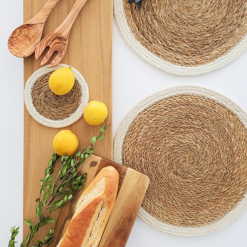 Handwoven Jute Placemats, Natural with White Trim (Set of 4)
