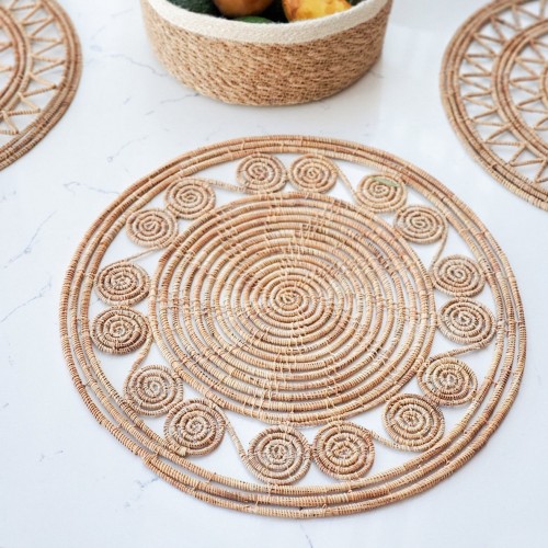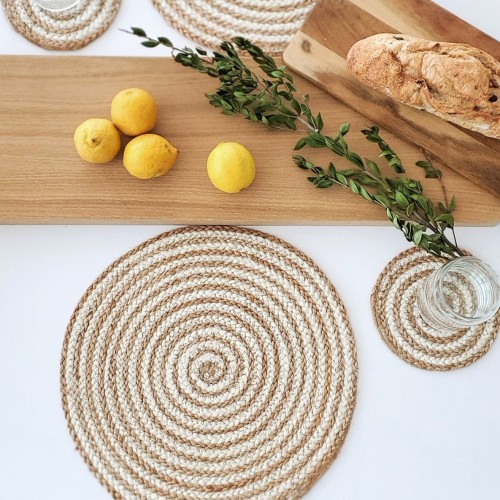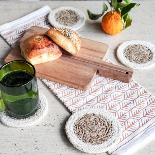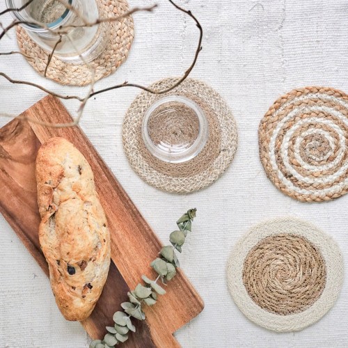 Handwoven Jute Trivet Set, Assorted in Green Pouch (Set of 4)
