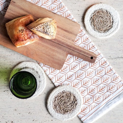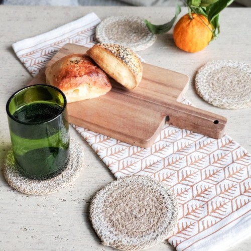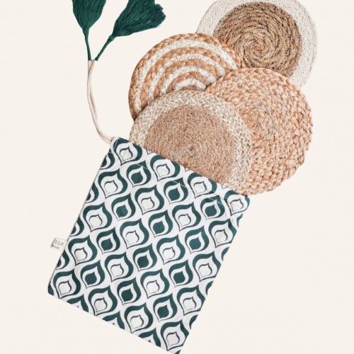 Handwoven Jute Trivet Set, Assorted in Green Pouch (Set of 4)