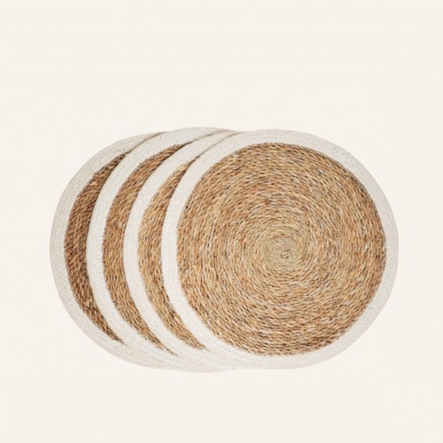 Handwoven Jute Placemats, Natural with White Trim (Set of 4)