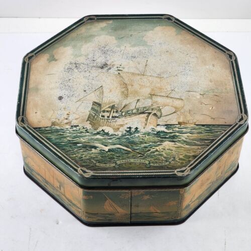 Loose-Wiles Biscuit Cookie Tin Sailing Clipper Ship Faded Antique USA 9.5″x3.5″